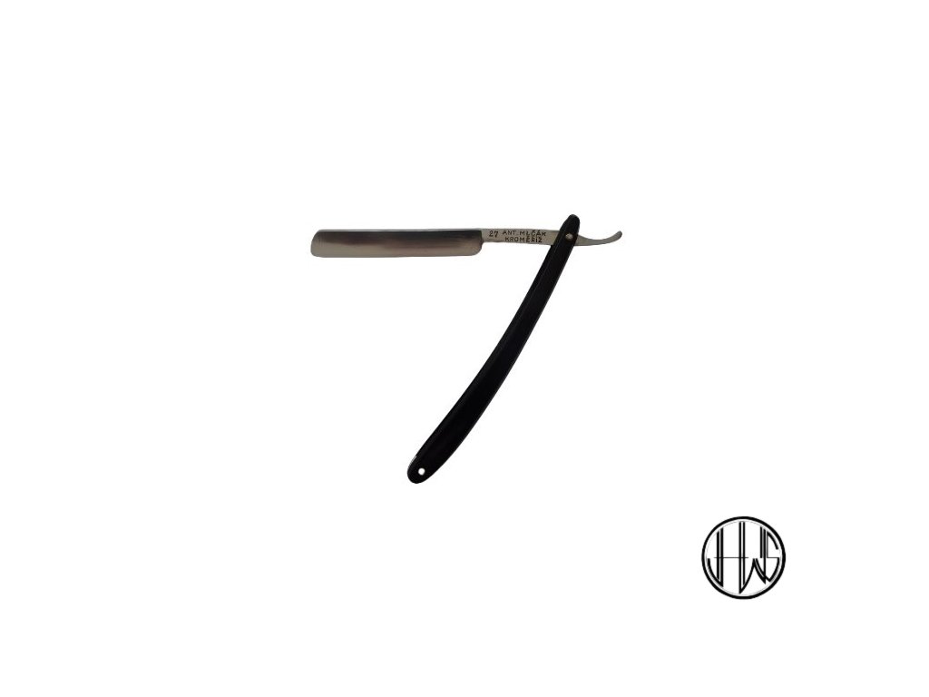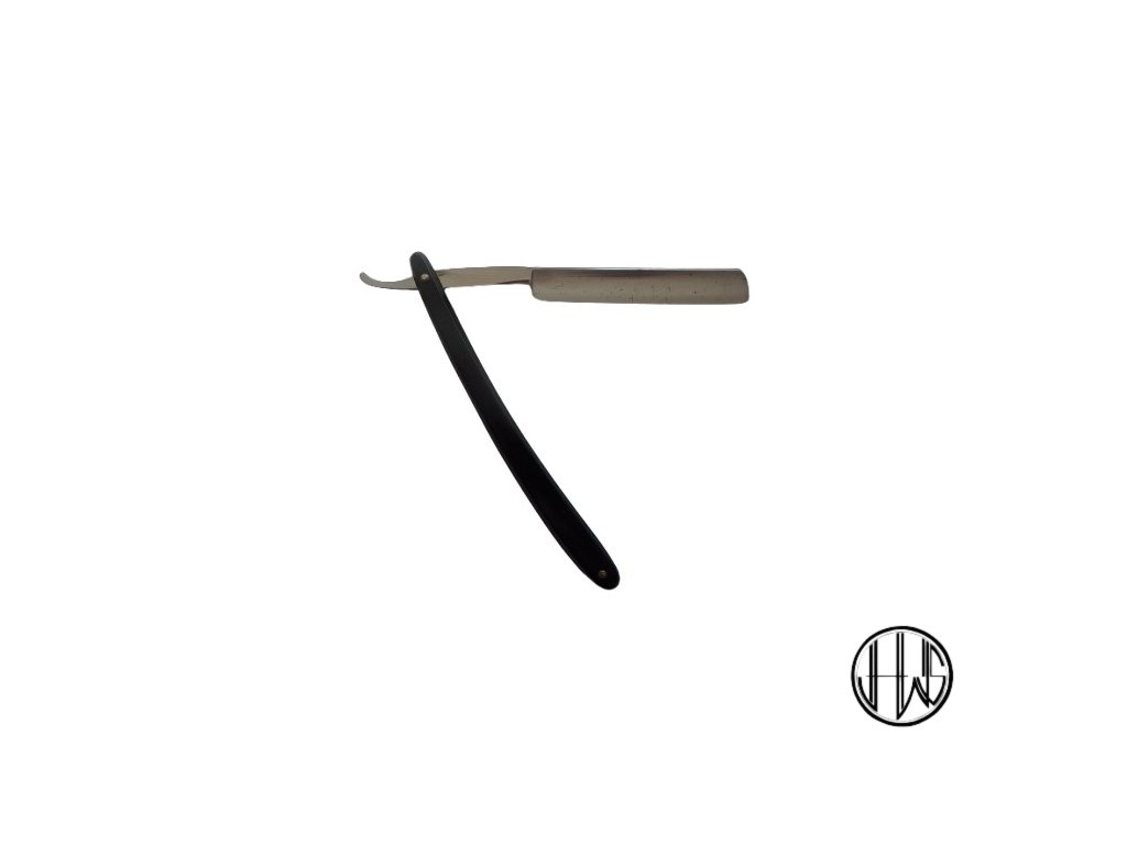 5/16 čtvrtdutá prvorepubliková břitva v černých plastových střenkách z věhlasného nožířství Antonína Mlčáka v Kroměříži.