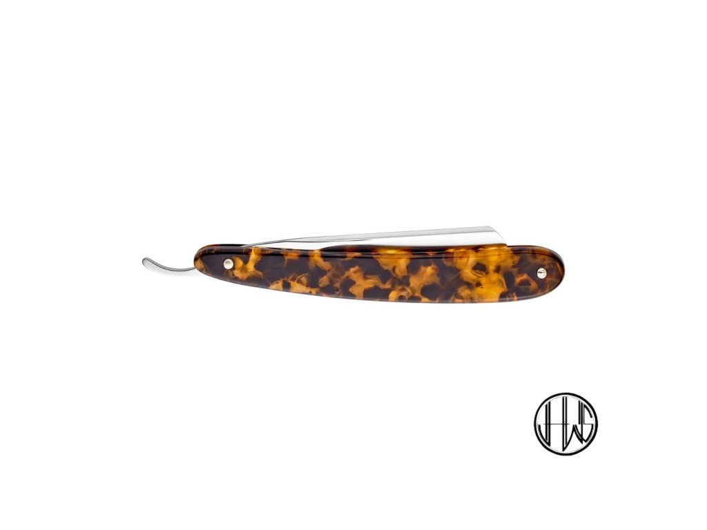 5/8 polodutá břitva DOVO se kulatou hlavou ve střenkách z plastové Tortoise shell imitace.