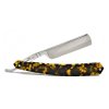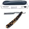 Břitva Thiers-Issard 5/8 Shell Basic 275-1196, čepel s kulatou hlavou z nejlepší uhlíkové oceli se znakem Evide Sonnant Extra. Střenky jsou vyrobeny z umělé pryskyřice imitující želvovinu.