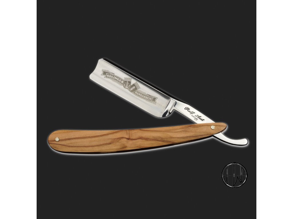 Kvalitní břitva značky Ralf Aust ručně vyráběná v německém Solingenu, čepel 6/8 palce z nejlepší oceli, se španělskou hlavou a střenkami z olivového dřeva.