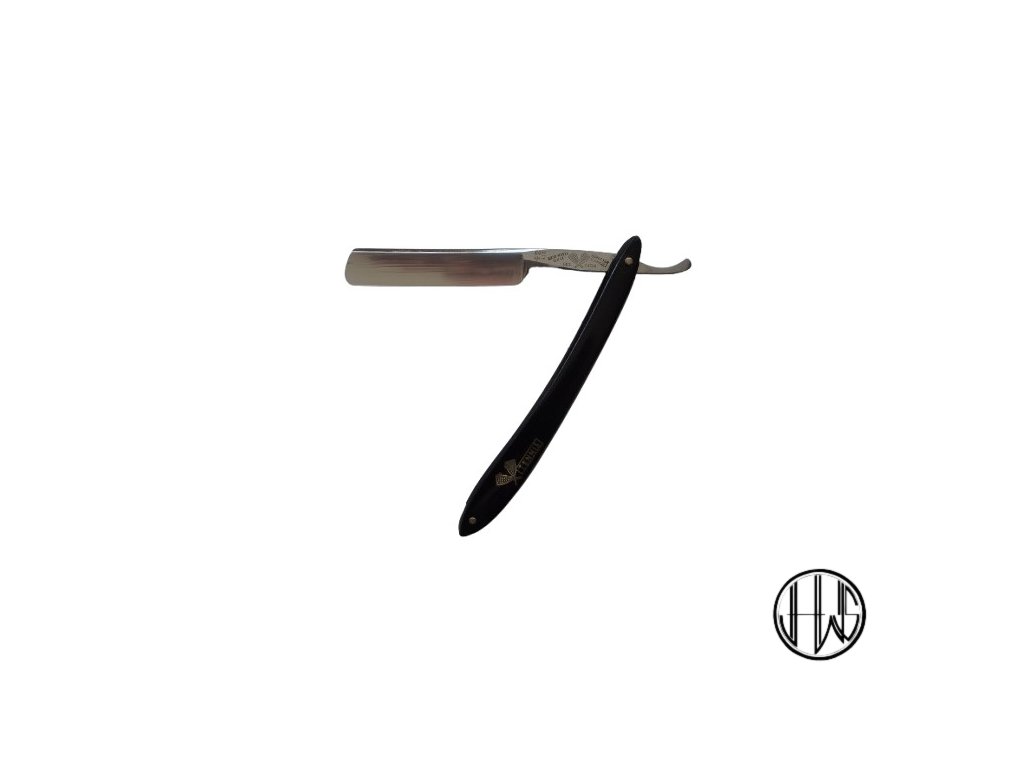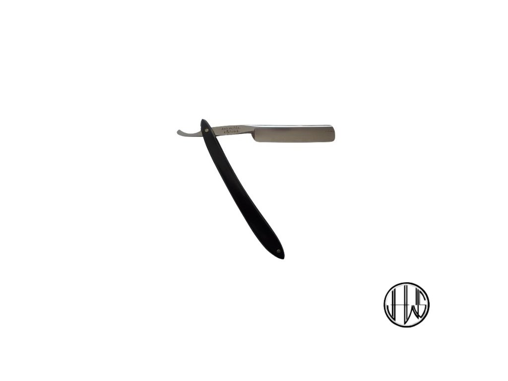 7/16 klínová německá břitva v černých plastových střenkách z věhlasného nožířství Antonína Mlčáka v Kroměříži.