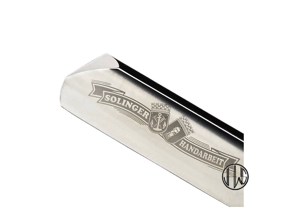 Krásná německá ruční práce z města Solingen. Čepel 5/8 s francouzskou hlavou je vyrobená z nejkvalitnější vysokouhlíkové oceli a na čepeli má vyleptán znak tohoto věhlasného výrobce.