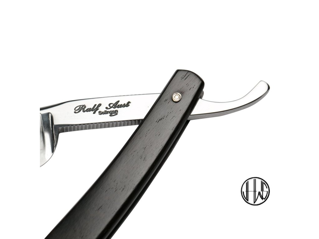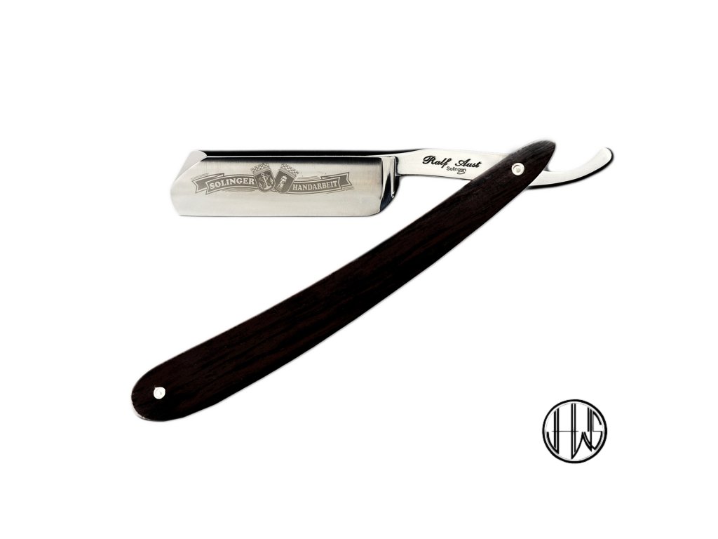 Kvalitní břitva značky Ralf Aust ručně vyráběná v německém Solingenu, čepel 5/8 palce z nejlepší oceli a střenkami z odolného dřeva blackwood (grenadill).
